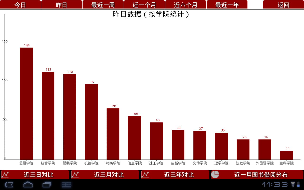 系統采用B/S架構模式,可通過(guò)電腦WEB端查詢(xún)相關(guān)系統使用報表、也可在移動(dòng)設備上登錄系統平臺,所有系統使用數據均在同一頁(yè)面進(jìn)行圖形展示,圖書(shū)館領(lǐng)導無(wú)論是在館或出差,隨時(shí)隨地均能了解圖書(shū)館各業(yè)務(wù)系統的實(shí)時(shí)使用情況。讀者也可以全方位的了解自己在圖書(shū)館內所有活動(dòng)的數據。